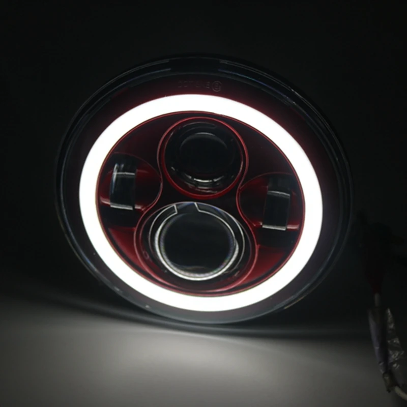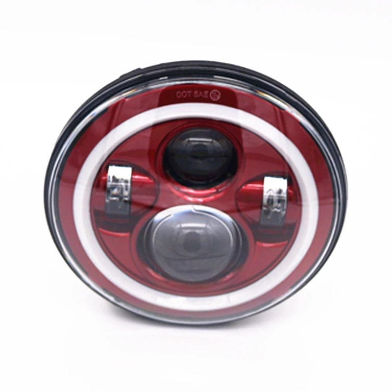 HIGH QUALITY Red Colored 40W 7 Inch Round LED Headlight Red/White DRL Full Halo Headlamp For Motorcycle 4X4 Offr