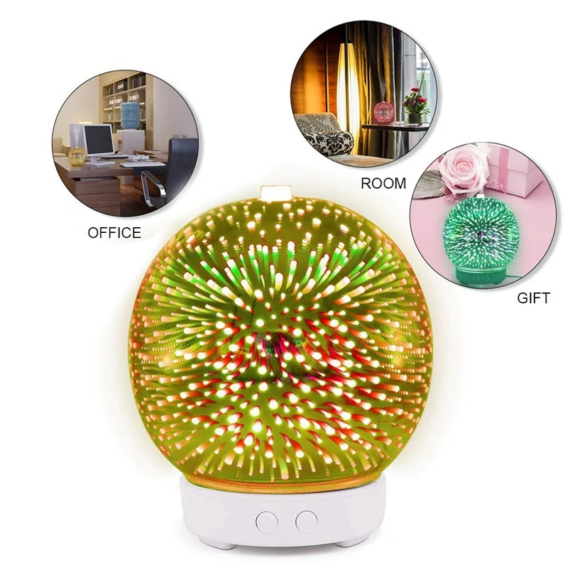 HOT!3D Firework Glass Ultrasonic Air Humidifier with 7 Color Led Night Light Aroma Essential Oil Di